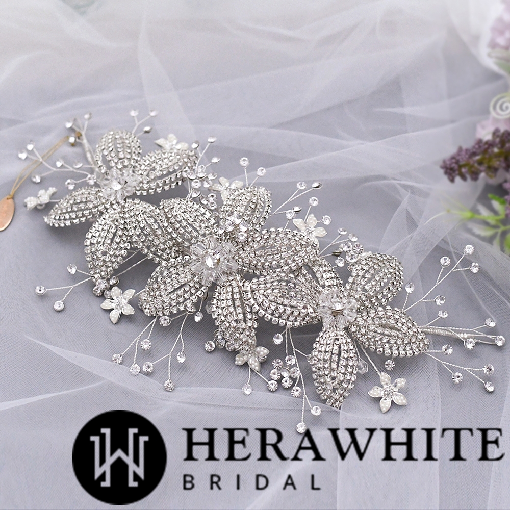 - Avantage : Serre-tête De Mariée A Fleurs Et A Strass perles, brillant